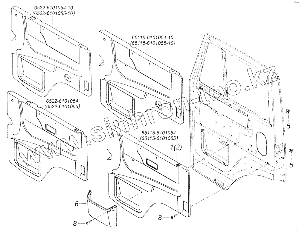 Каталог запасных частей к технике: Камский автозавод 5308 (Евро 3). 65115-6102005 Установка обивок двери