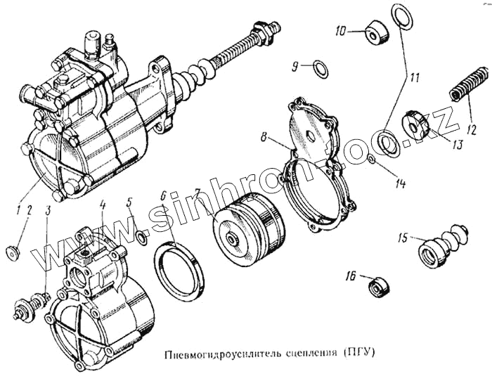 Каталог запасных частей к технике: Камский автозавод 5315. Пневмогидроусилитель сцепления (ПГУ)