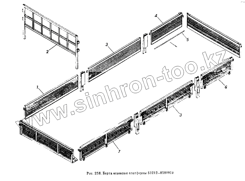 Каталог запасных частей к технике: Камский автозавод 5320. Борта основные платформы 53212-8500010