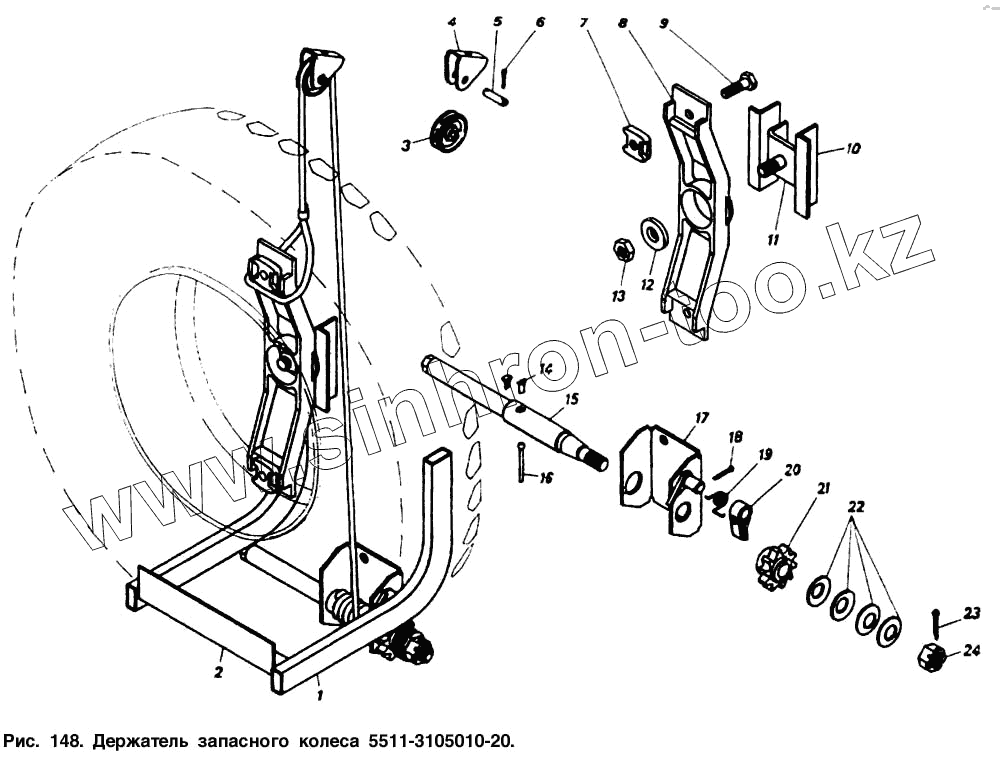 Каталог запасных частей к технике: Камский автозавод 5320. Держатель запасного колеса 5511-3105010-20
