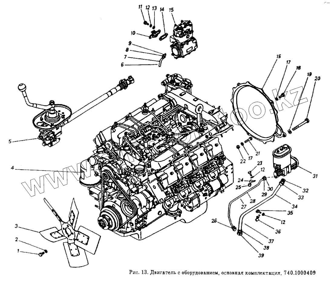 Каталог запасных частей к технике: Камский автозавод 5320. Двигатель с оборудованием, основная комплектация