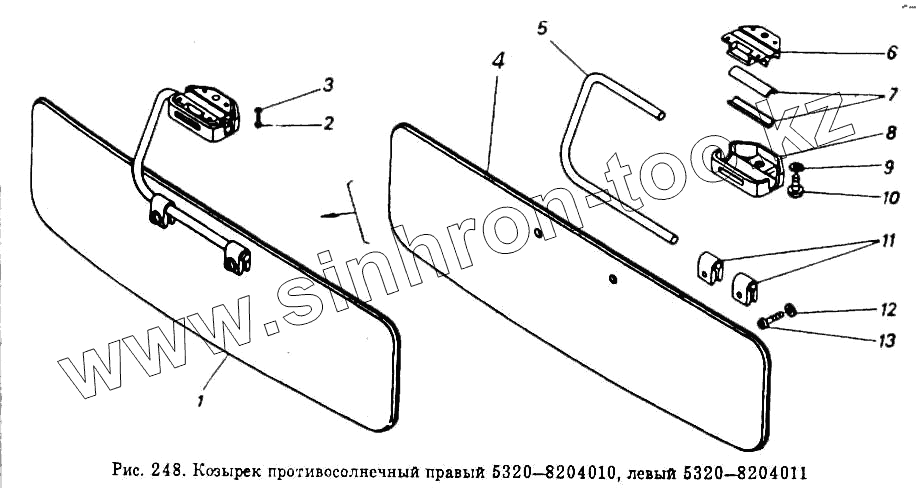 Каталог запасных частей к технике: Камский автозавод 5320. Козырек противосолнечный правый и левый
