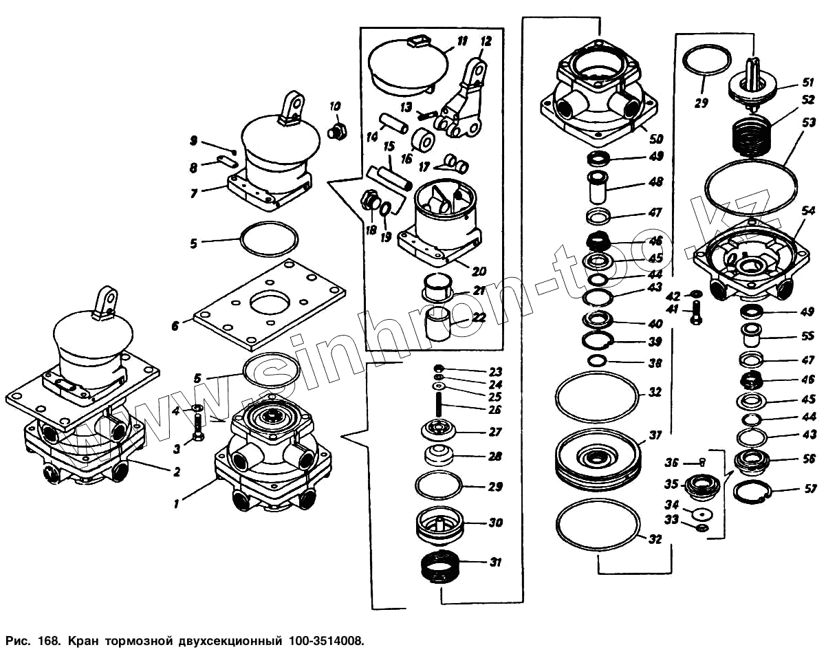 Каталог запасных частей к технике: Камский автозавод 5320. Кран тормозной двухсекционный