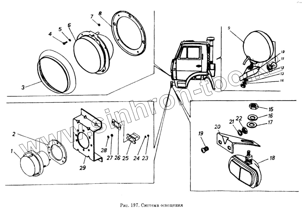 Каталог запасных частей к технике: Камский автозавод 5320. Система освещения