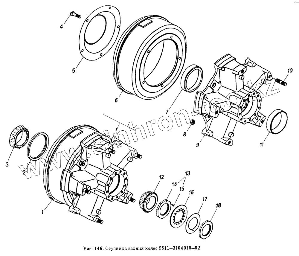 Каталог запасных частей к технике: Камский автозавод 5320. Ступица задних колес