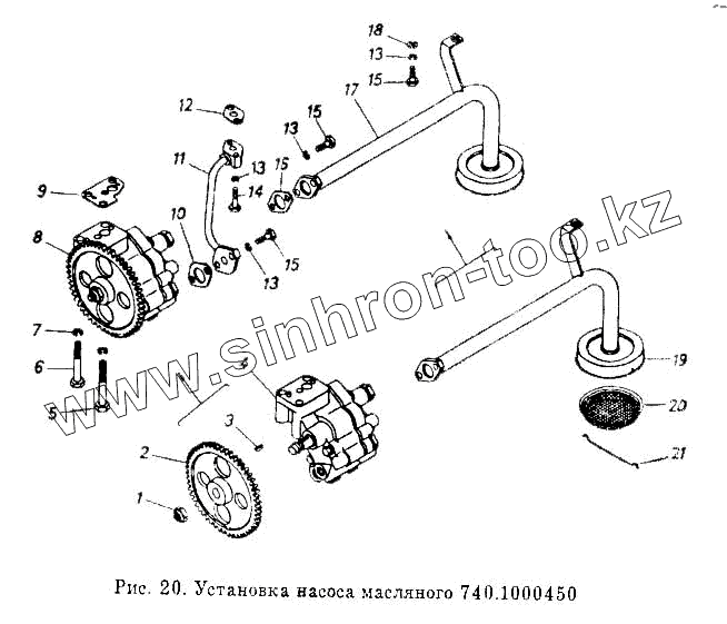 Каталог запасных частей к технике: Камский автозавод 5320. Установка насоса масляного