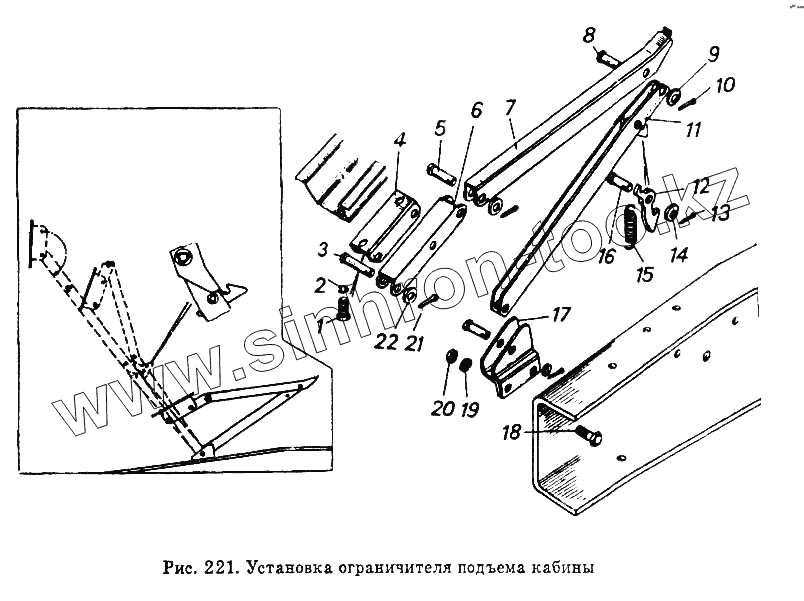 Каталог запасных частей к технике: Камский автозавод 5320. Установка ограничителя подъема кабины