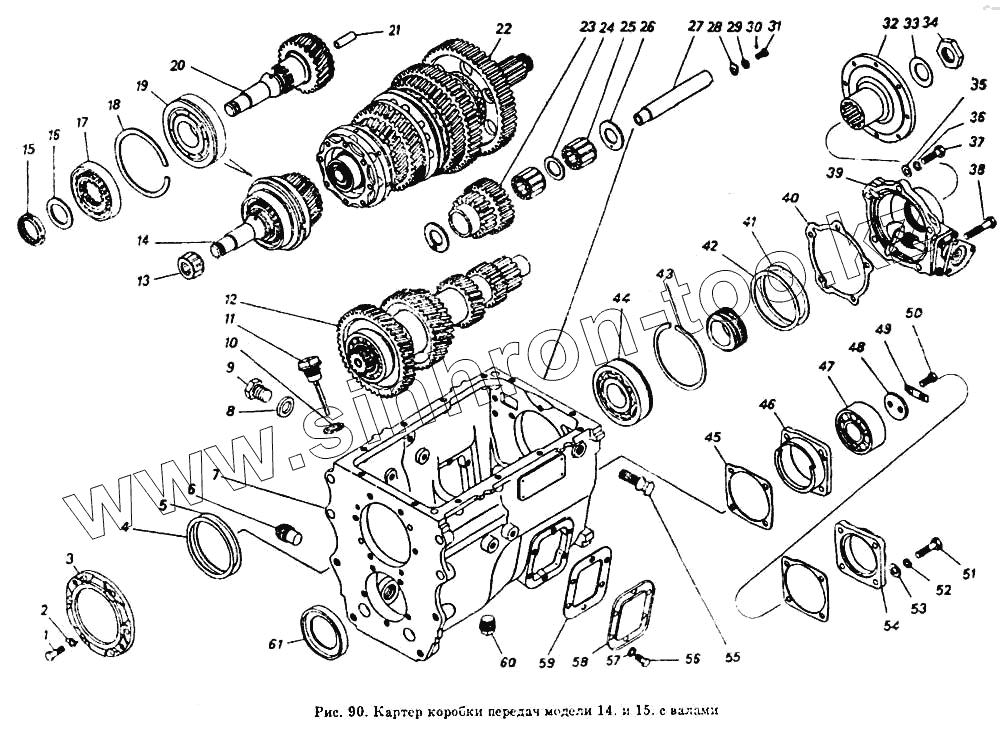 Каталог запасных частей к технике: Камский автозавод 53212. Картер коробки передач с валами