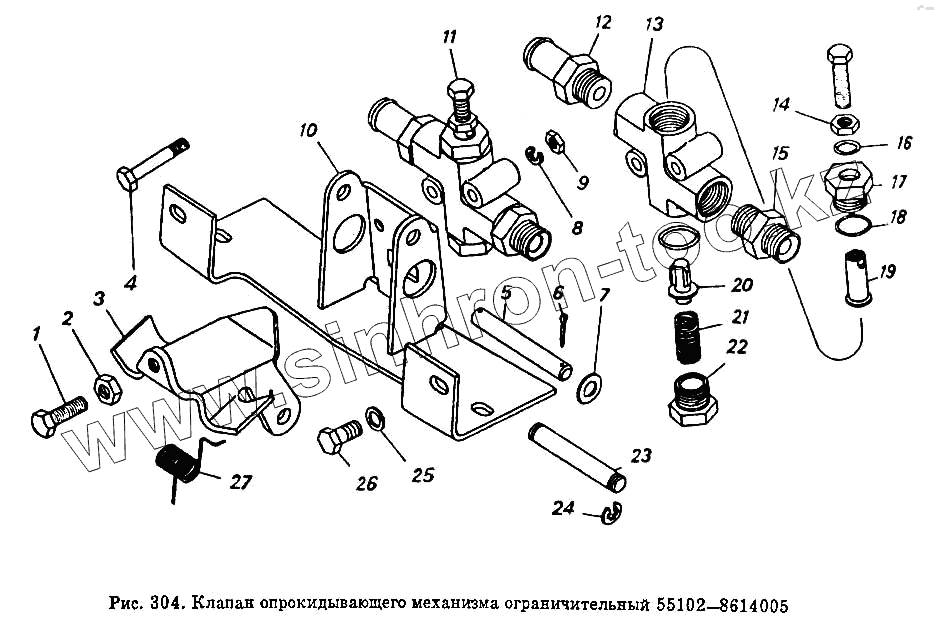 Каталог запасных частей к технике: Камский автозавод 53212. Клапан опрокидывающего механизма ограничительный 55102-8614005