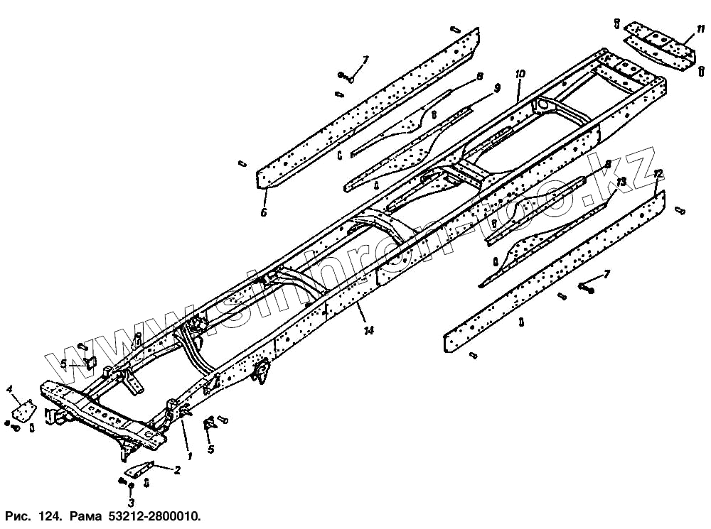 Каталог запасных частей к технике: Камский автозавод 53212. Рама 53212-2800010