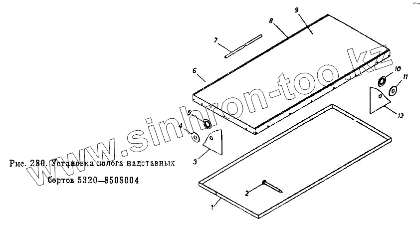 Каталог запасных частей к технике: Камский автозавод 53212. Установка полога надставных бортов 5320-8508004