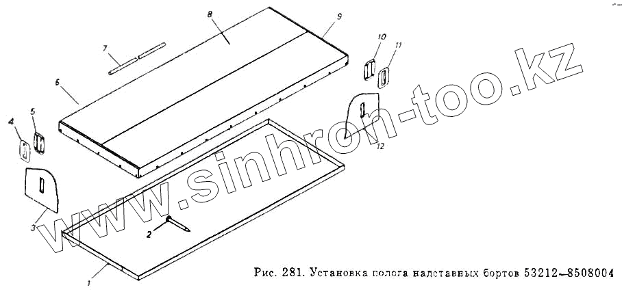 Каталог запасных частей к технике: Камский автозавод 53212. Установка полога надставных бортов 53212-8508004