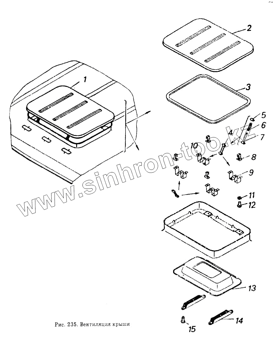Каталог запасных частей к технике: Камский автозавод 53212. Вентиляция крыши
