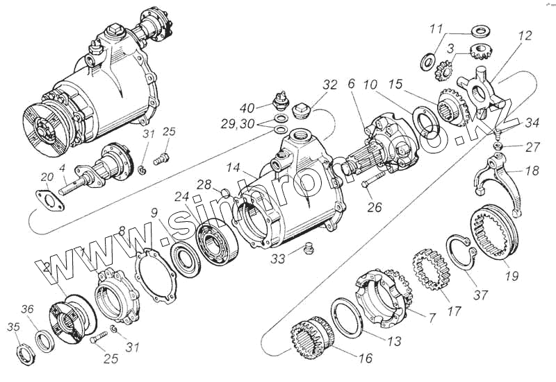 Каталог запасных частей к технике: Камский автозавод 53228, 65111. Дифференциал межосевой