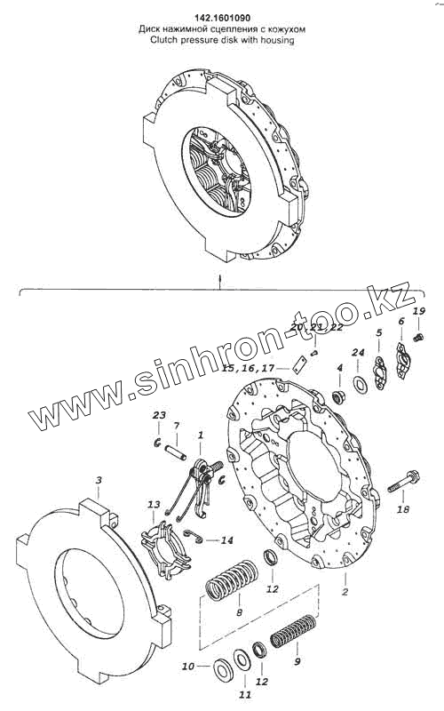 Каталог запасных частей к технике: Камский автозавод 53228, 65111. Диск нажимной сцепления с кожухом