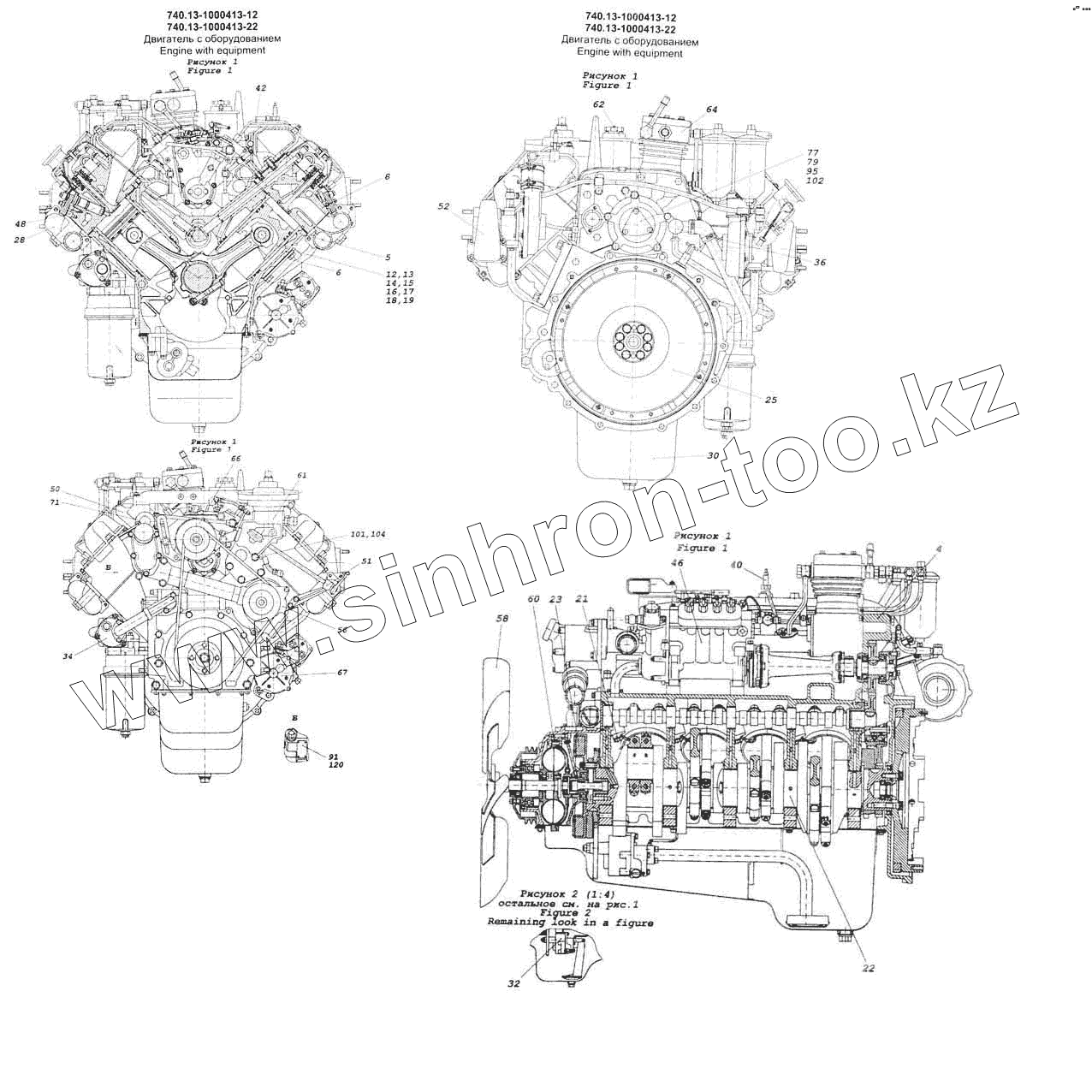 Каталог запасных частей к технике: Камский автозавод 53228, 65111. Двигатель с оборудованием