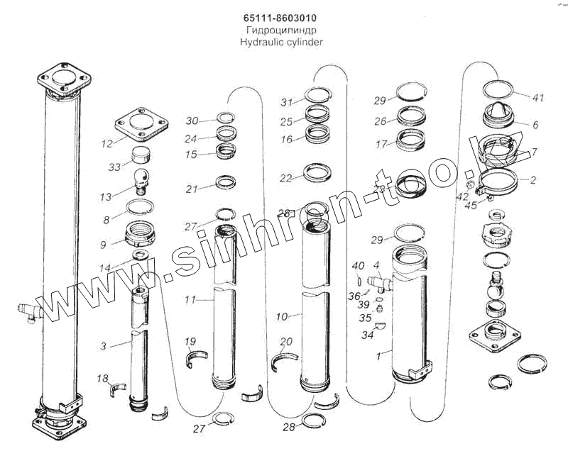 Каталог запасных частей к технике: Камский автозавод 53228, 65111. Гидроцилиндр
