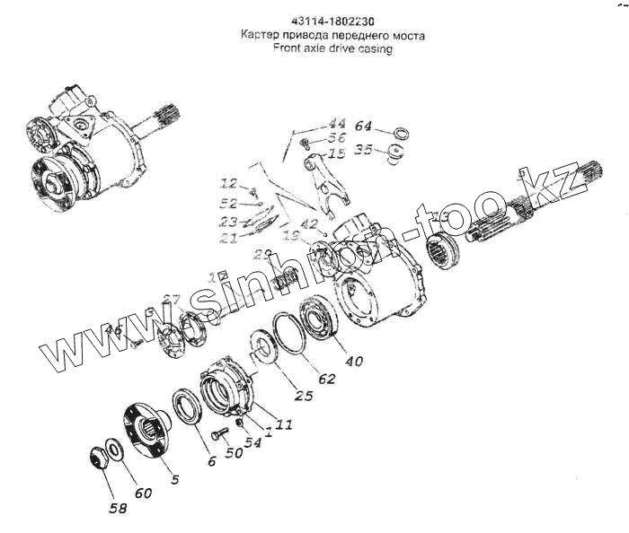 Каталог запасных частей к технике: Камский автозавод 53228, 65111. Картер привода переднего моста