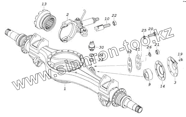 Каталог запасных частей к технике: Камский автозавод 53228, 65111. Картер среднего моста