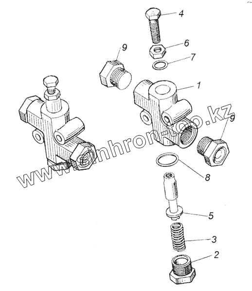 Каталог запасных частей к технике: Камский автозавод 53228, 65111. Клапан ограничительный
