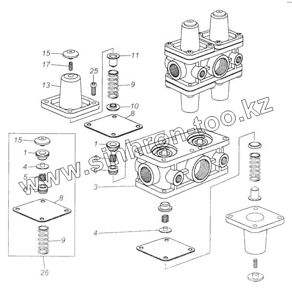 Каталог запасных частей к технике: Камский автозавод 53228, 65111. Клапан защитный четырехконтурный