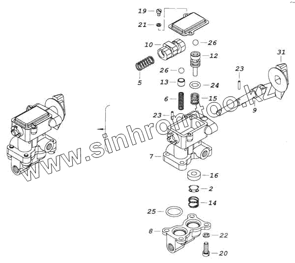 Каталог запасных частей к технике: Камский автозавод 53228, 65111. Кран управления раздаточной коробкой