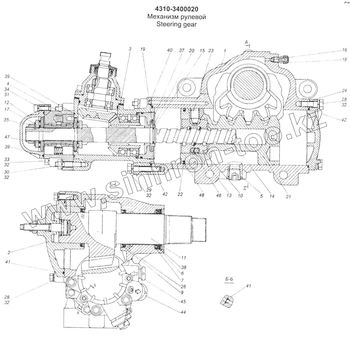 Каталог запасных частей к технике: Камский автозавод 53228, 65111. Механизм рулевой
