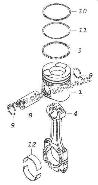 Каталог запасных частей к технике: Камский автозавод 53228, 65111. Поршень с шатуном и кольцами