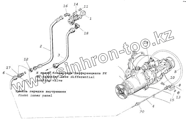 Каталог запасных частей к технике: Камский автозавод 53228, 65111. Привод блокировки межосевого дифференциала