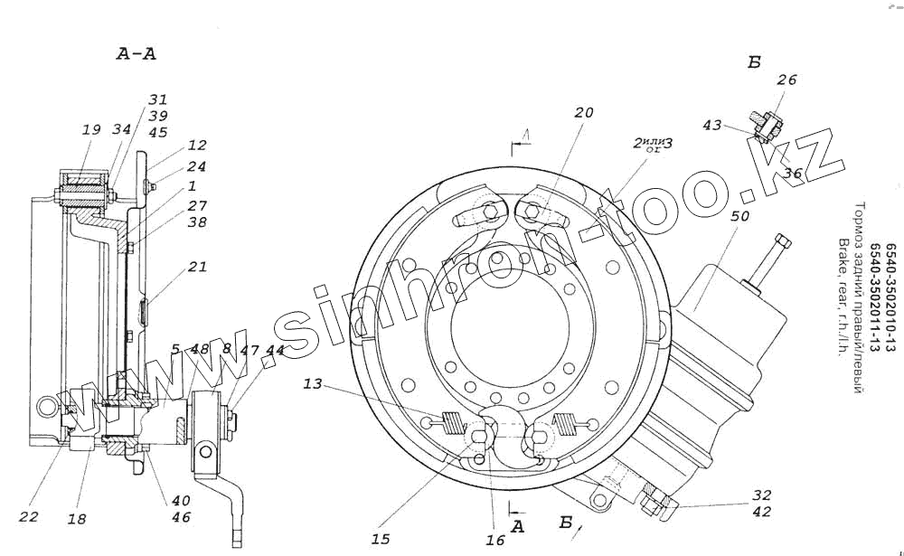 Каталог запасных частей к технике: Камский автозавод 53228, 65111. Тормоз задний правый и левый
