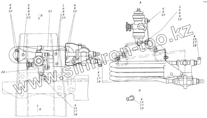 Каталог запасных частей к технике: Камский автозавод 53228, 65111. Установка блока подготовки воздуха