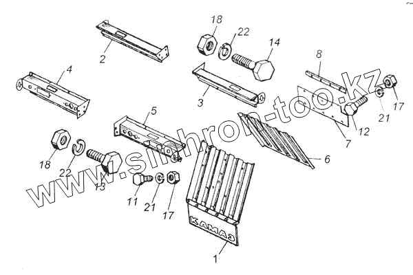 Каталог запасных частей к технике: Камский автозавод 53228, 65111. Установка брызговиков