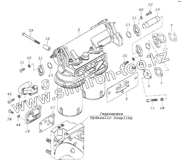 Каталог запасных частей к технике: Камский автозавод 53228, 65111. Установка фильтра и теплообменника