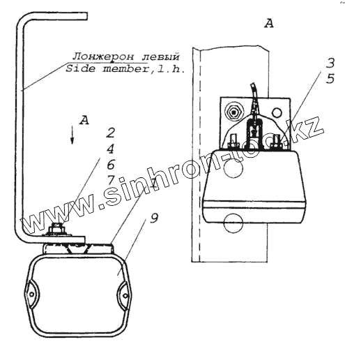 Каталог запасных частей к технике: Камский автозавод 53228, 65111. Установка фонаря заднего хода