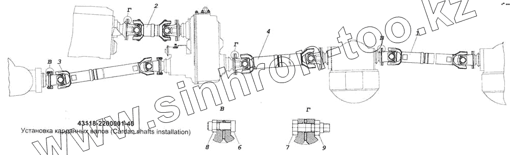 Каталог запасных частей к технике: Камский автозавод 53228, 65111. Установка карданных валов