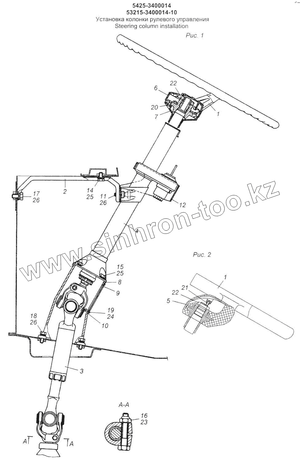 Каталог запасных частей к технике: Камский автозавод 53228, 65111. Установка колонки рулевого управления
