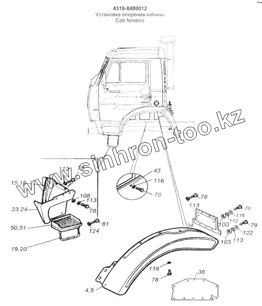 Каталог запасных частей к технике: Камский автозавод 53228, 65111. Установка оперения кабины
