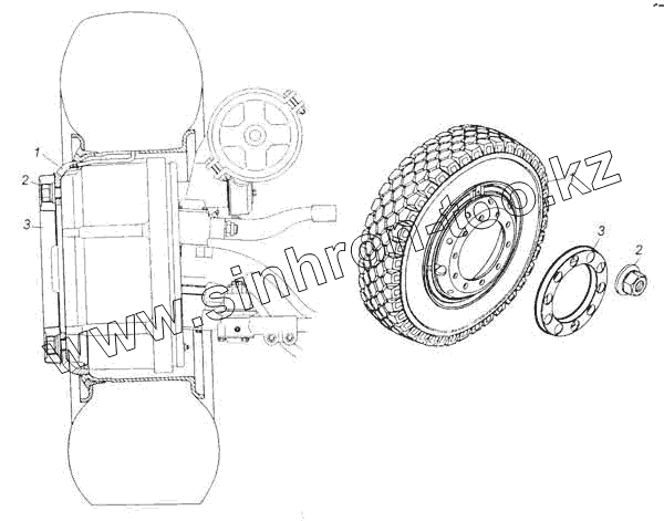 Каталог запасных частей к технике: Камский автозавод 53228, 65111. Установка передних колес