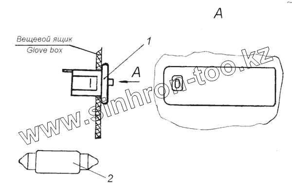 Каталог запасных частей к технике: Камский автозавод 53228, 65111. Установка плафона освещения вещевого ящика