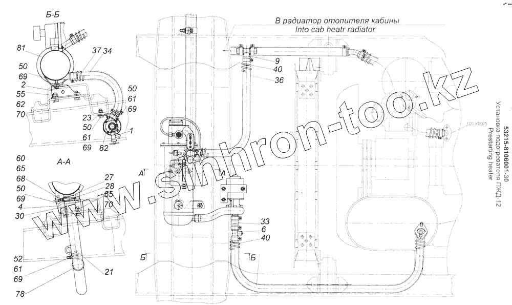 Каталог запасных частей к технике: Камский автозавод 53228, 65111. Установка подогревателя ПЖД-12
