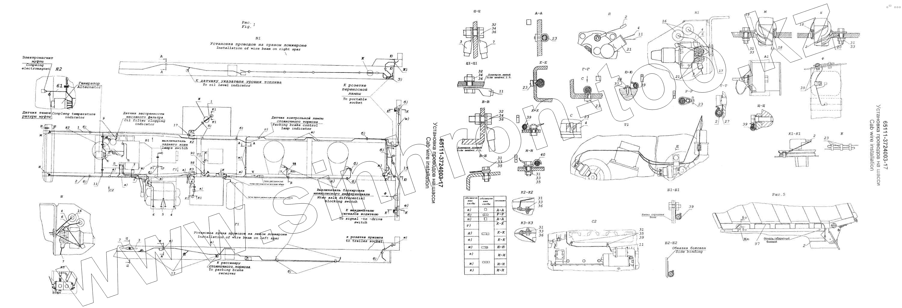 Каталог запасных частей к технике: Камский автозавод 53228, 65111. Установка проводов на шасси