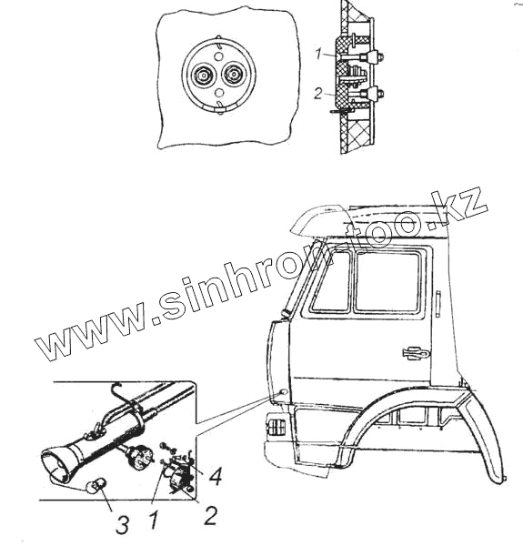 Каталог запасных частей к технике: Камский автозавод 53228, 65111. Установка розетки переносной лампы