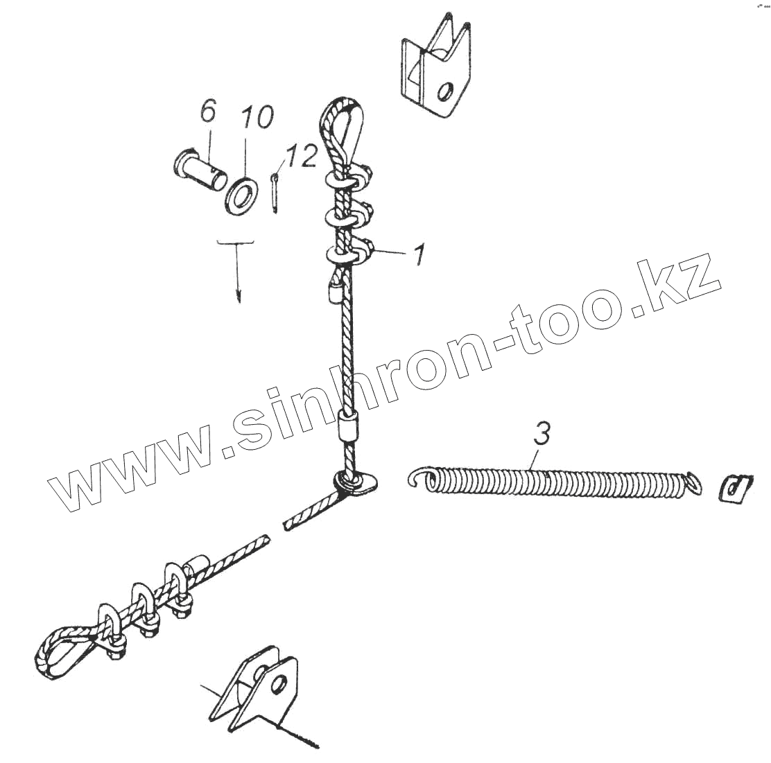 Каталог запасных частей к технике: Камский автозавод 53228, 65111. Установка троса ограничения подъема платформы