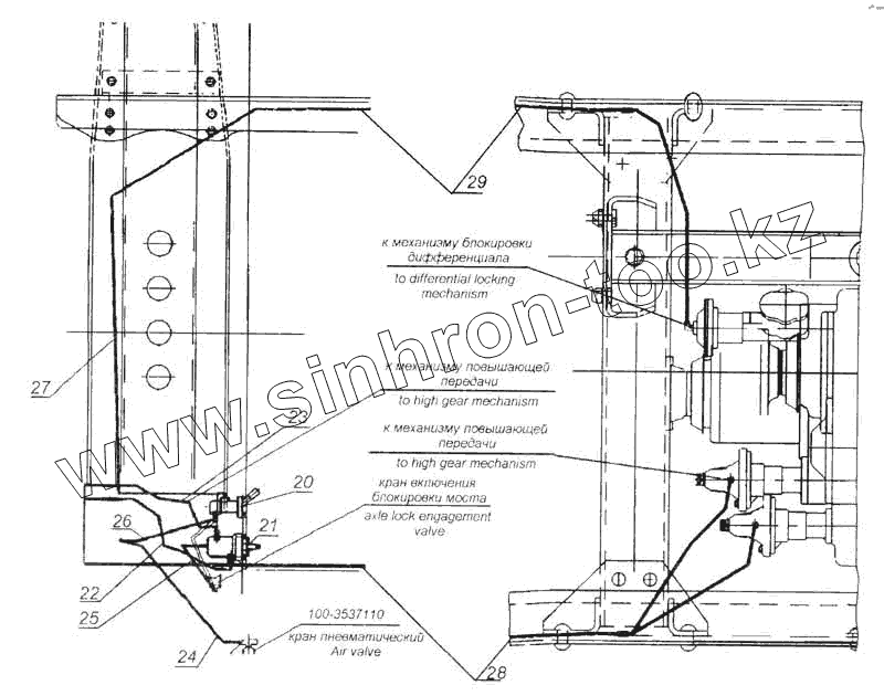 Каталог запасных частей к технике: Камский автозавод 53228, 65111. Установка управления раздаточной коробки