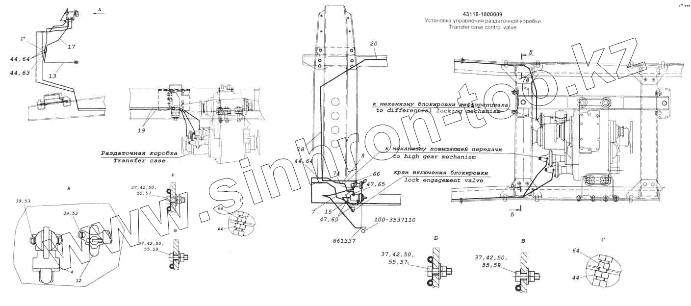 Каталог запасных частей к технике: Камский автозавод 53228, 65111. Установка управления раздаточной коробки