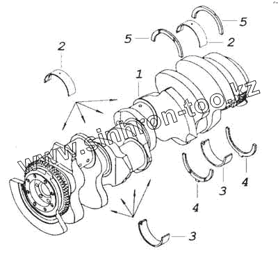Каталог запасных частей к технике: Камский автозавод 53228, 65111. Установка вала коленчатого