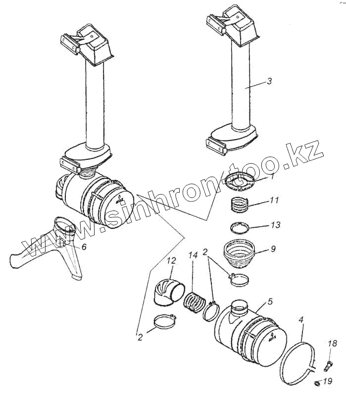 Каталог запасных частей к технике: Камский автозавод 53228, 65111. Установка воздушного фильтра