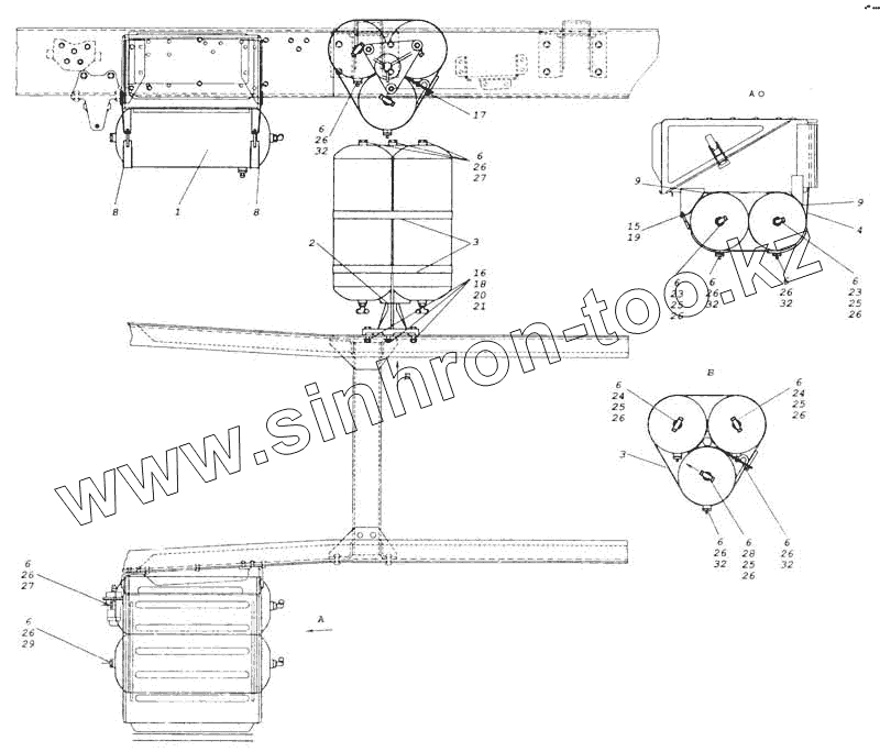 Каталог запасных частей к технике: Камский автозавод 53228, 65111. Установка воздушных ресиверов