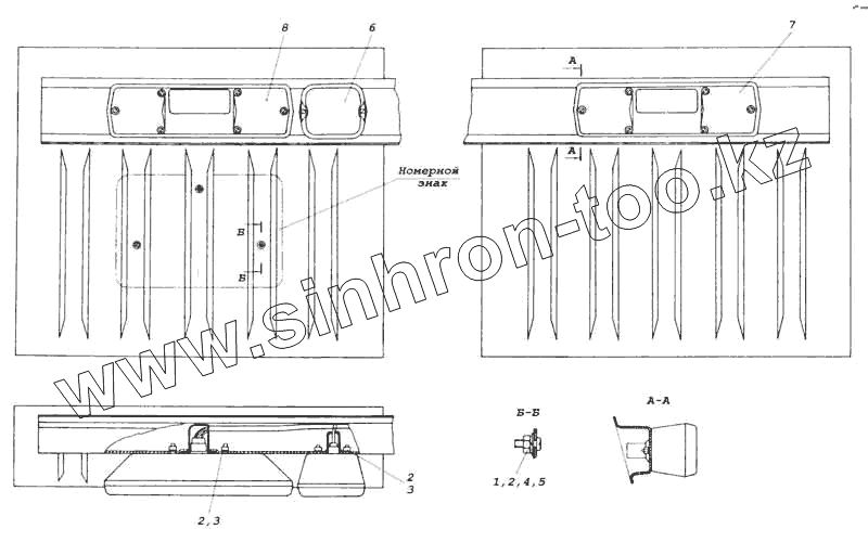 Каталог запасных частей к технике: Камский автозавод 53228, 65111. Установка задних фонарей