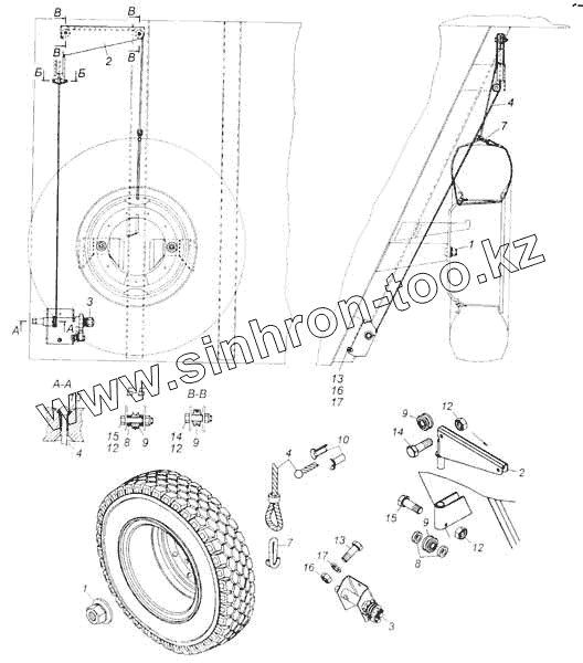 Каталог запасных частей к технике: Камский автозавод 53228, 65111. Установка запасного колеса